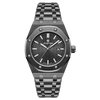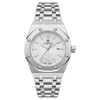 The solid brushed-steel case and integrated bracelet create a sleek, masculine profile that’s built to withstand daily wear while keeping a premium, high-end look.